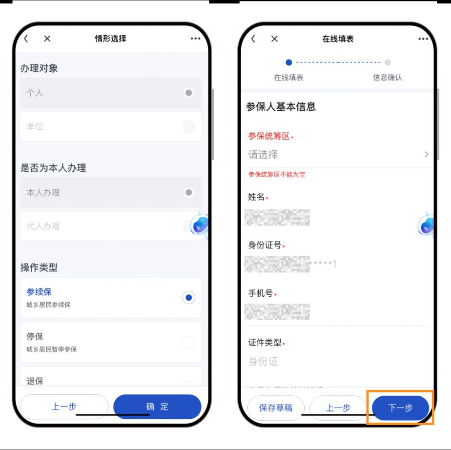 选择具体情形后,按要求填写表格并确认信息,即可完成城乡居民医疗保险参保登记。